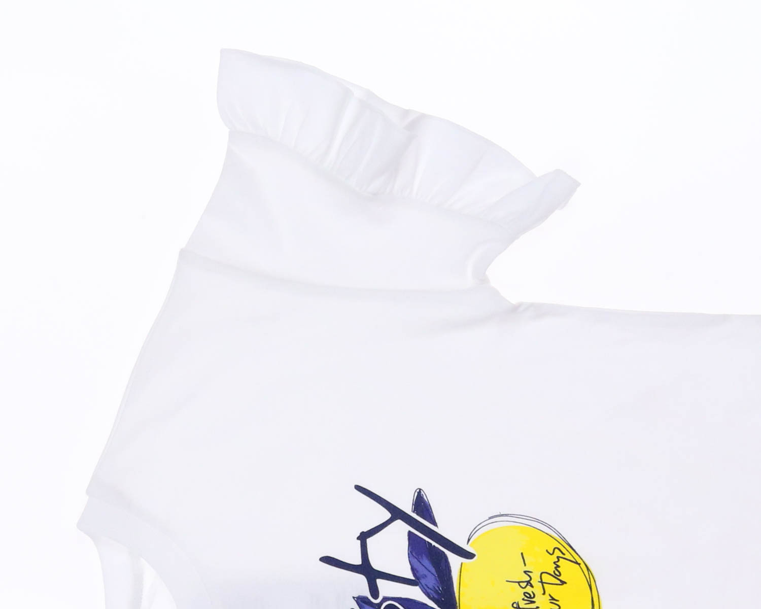 Прекрасный стильный костюм из двух предметов : футболки и брюк из легкого штапеля . Край рукава оформлен воланом. Брюки с боковыми карманами на манжетах. Яркий и актуальный костюм будет незаменимым нарядом в летний сезон.