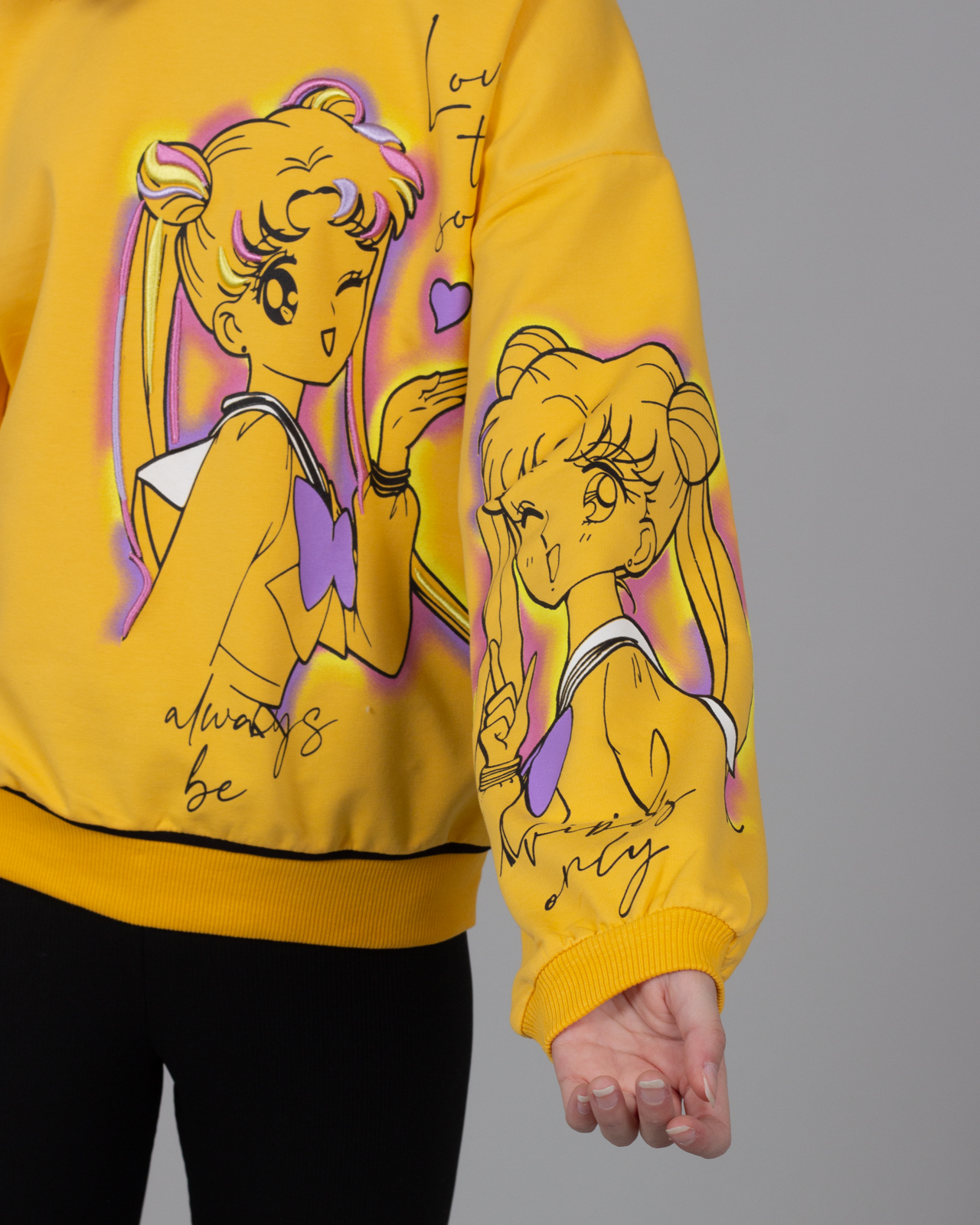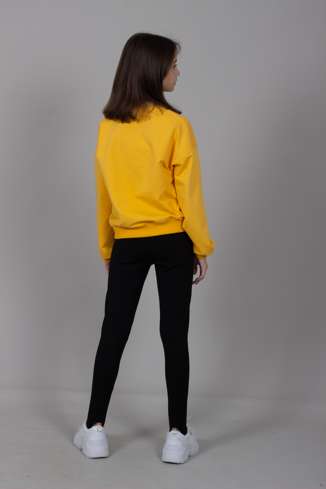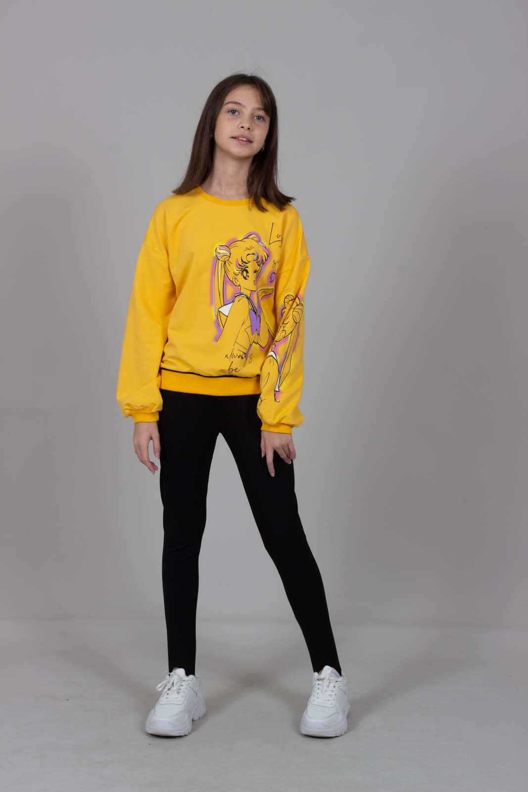 Свитшот BERMINI для девочки умеренного объема оптом,  выполнен из трикотажа футер 2х нитка (петля). Линия плеча спущенная, принт дополнен вышивкой.