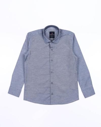 Рубашка для мальчиков прямого кроя с длинными рукавами и классическим отложным воротничком. Модель застегивается на пуговицы.