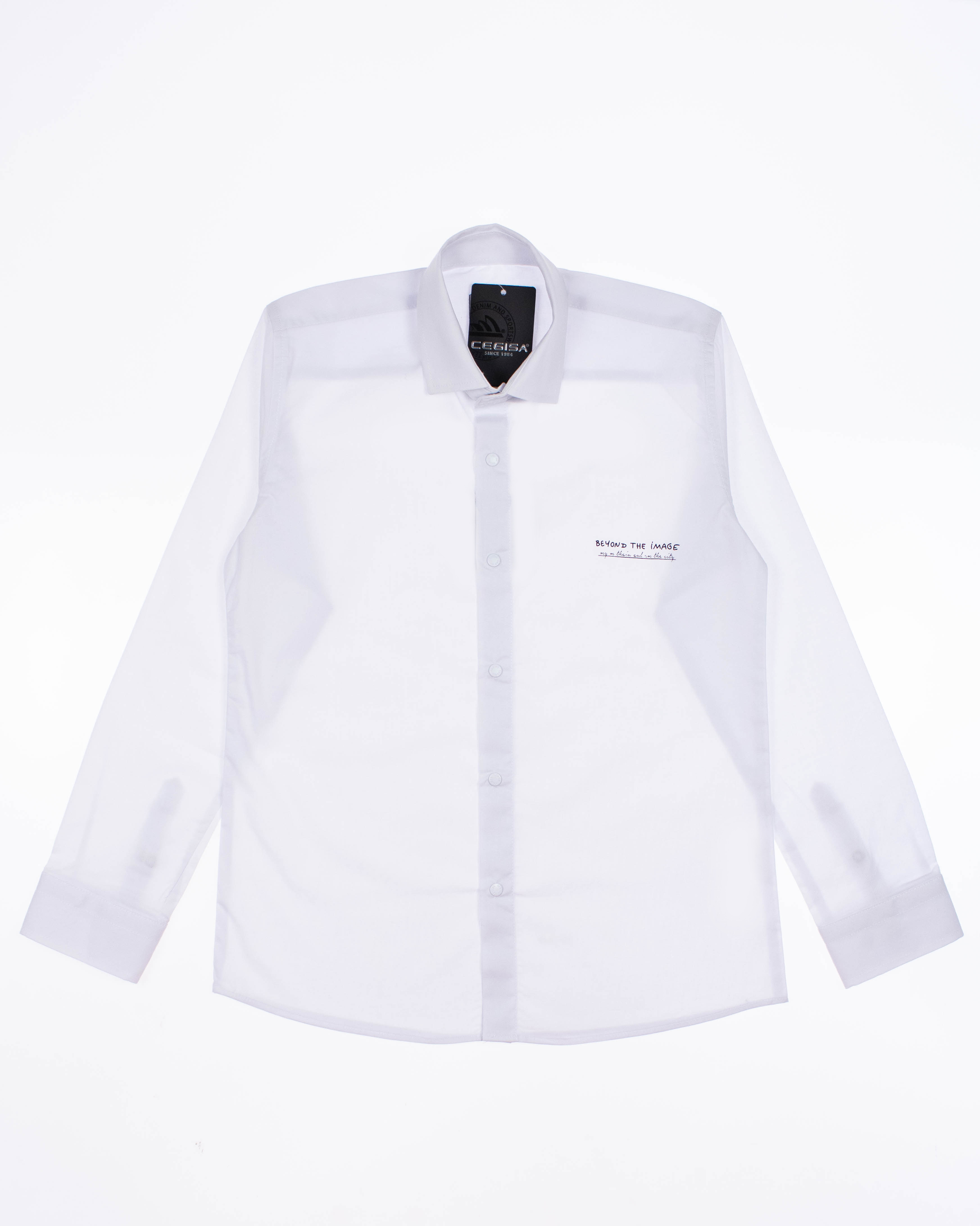 Однотонная рубашка Cegisa для мальчика оптом. Модель приталенного кроя с длинными рукавами,  воротник-стойка, застегивается на  кнопки.  Одним из главных преимуществ рубашки из хлопка с лайкрой Cegisa является ее материал. Хлопок - натуральное волокно, которое обладает рядом превосходных свойств. Во-первых, хлопковая ткань отлично впитывает влагу, позволяя коже "дышать".Во-вторых, хлопок прочный и долговечный материал. Одежда из него будет служить вам долгое время, не теряя своего первоначального вида. Застежка на кнопки облегчает процесс надевания и снятия рубашки, а воротник-стойка добавляет стильности и оригинальности. Стоит отметить, что на передней и задней части рубашки нанесен стильный графичный принт. Это придаст вашему образу дополнительную изюминку и позволит выделиться из толпы. Однако не стоит забывать и о практичных аспектах рубашки из хлопка с лайкрой Cegisa. Она легко стирается и быстро сохнет, что позволяет поддерживать ее в идеальном состоянии.