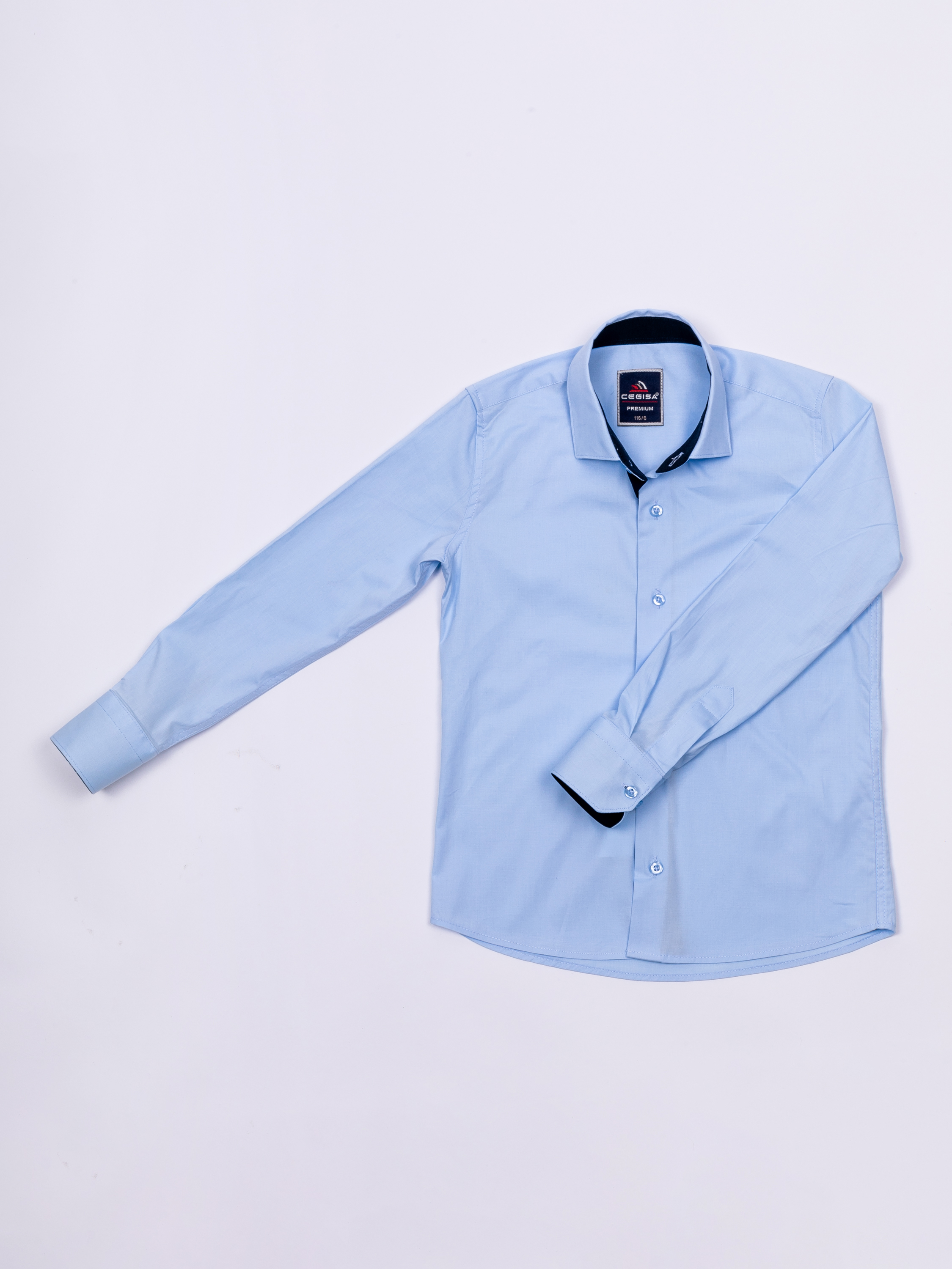 Рубашка CEGISA для мальчика оптом, прямого кроя с длинными рукавами и классическим отложным воротничком. Модель застегивается на пуговицы.