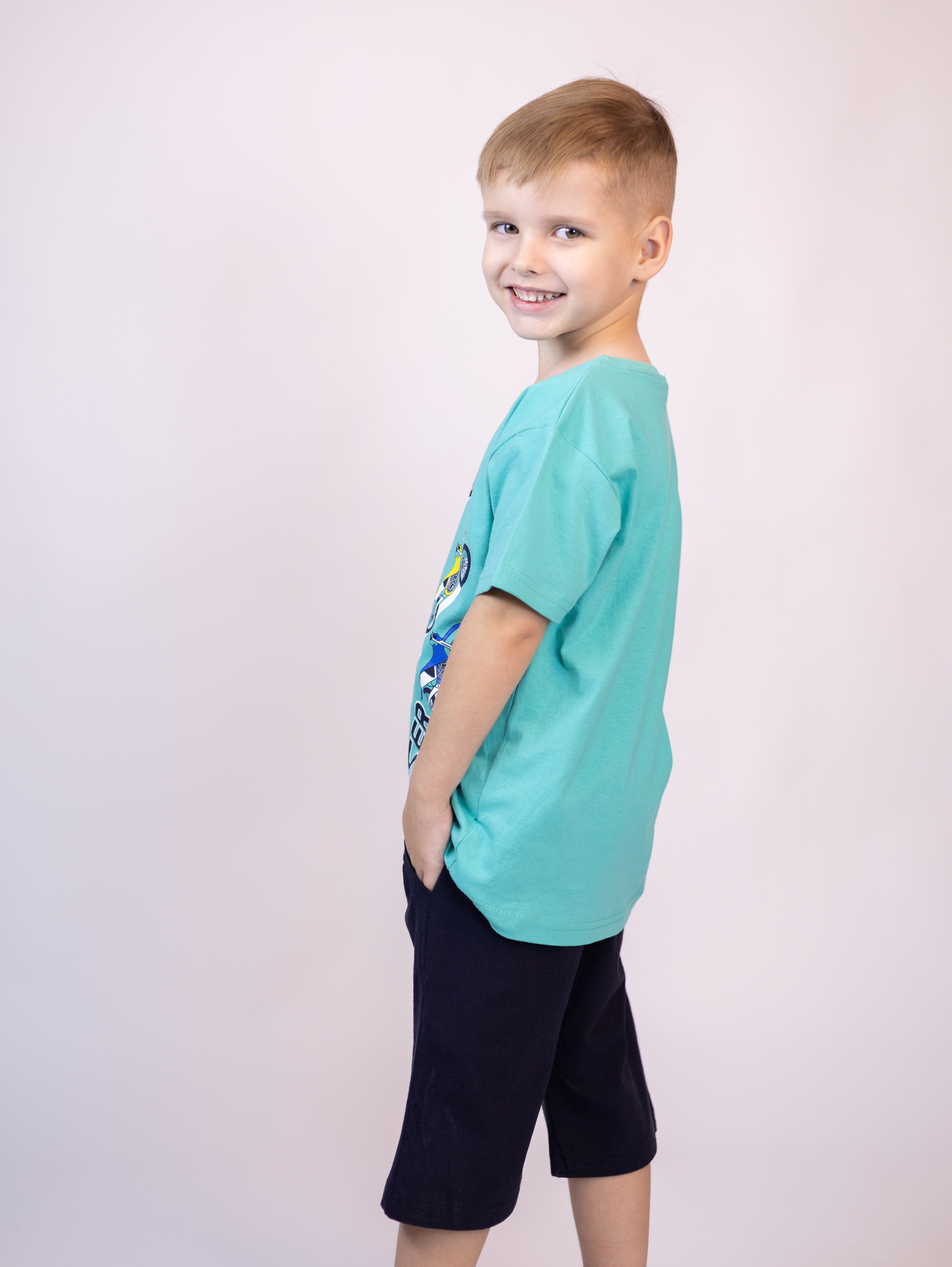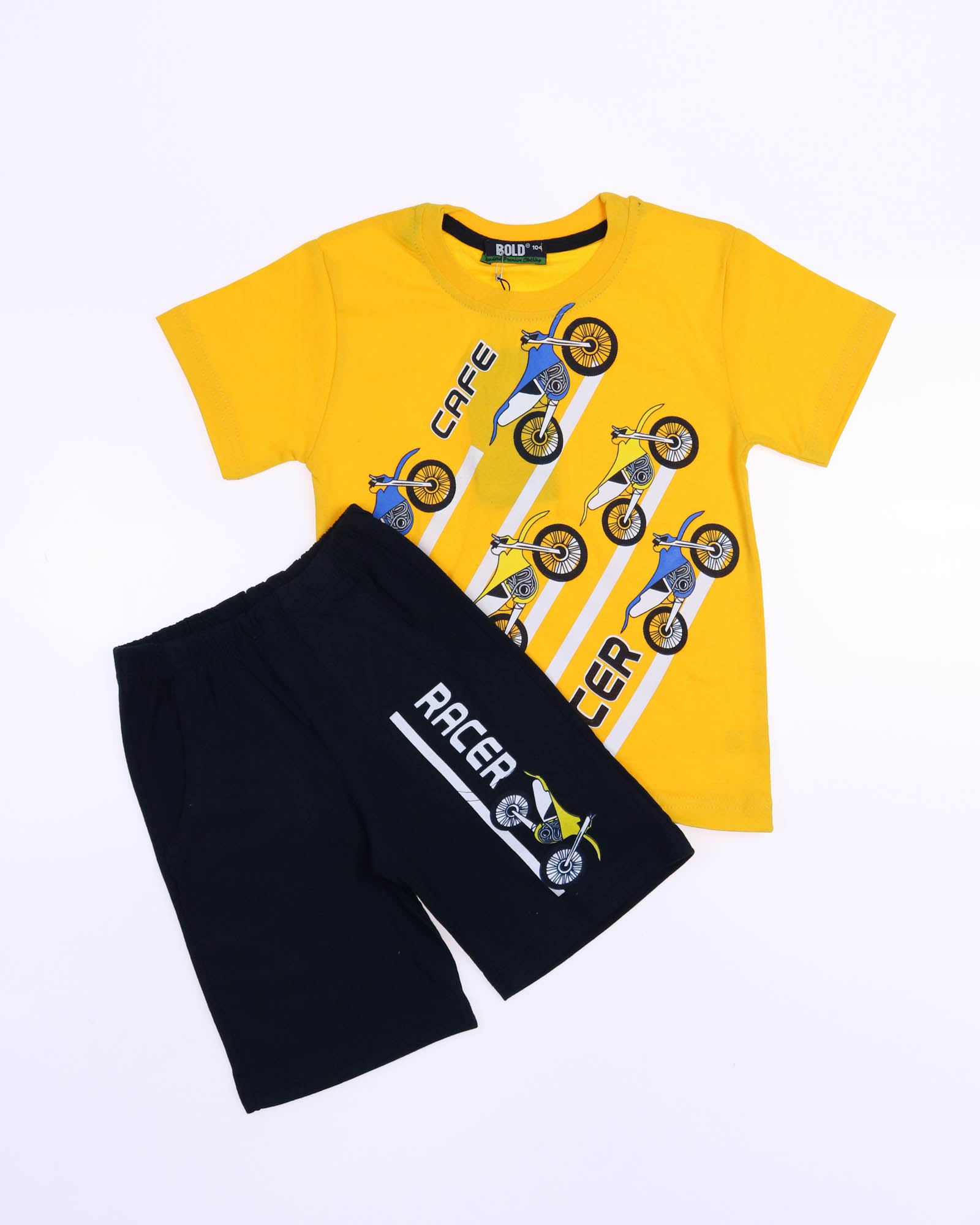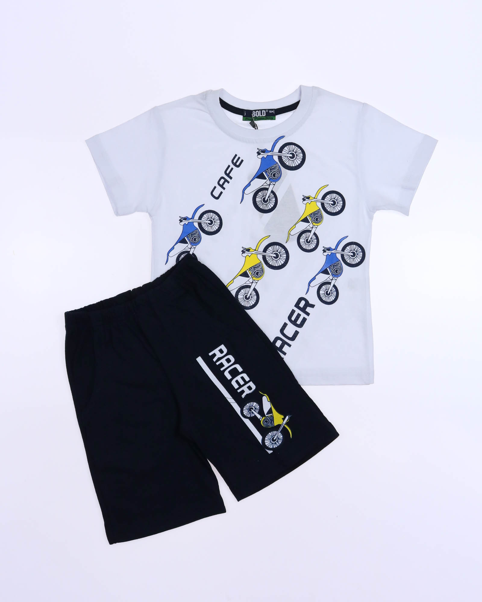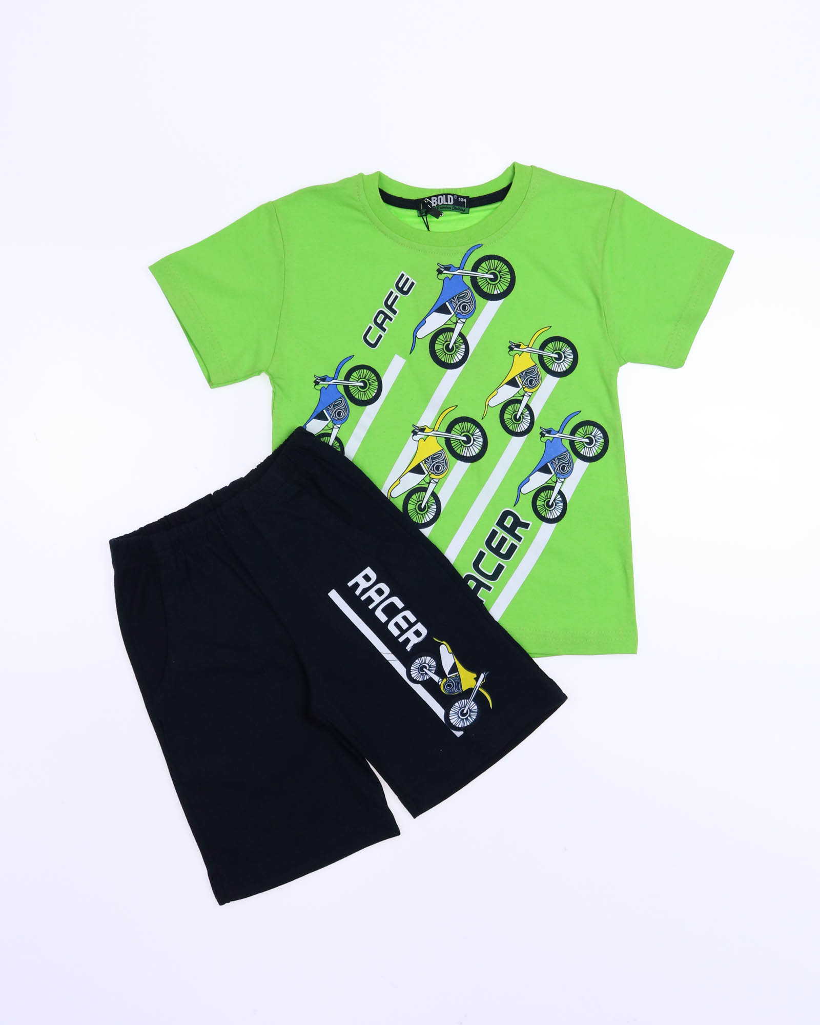 Трикожный костюм BOLD оптом из 100% хлопка с оригинальным, ярким принтом. Шорты трикотажные с карманами.