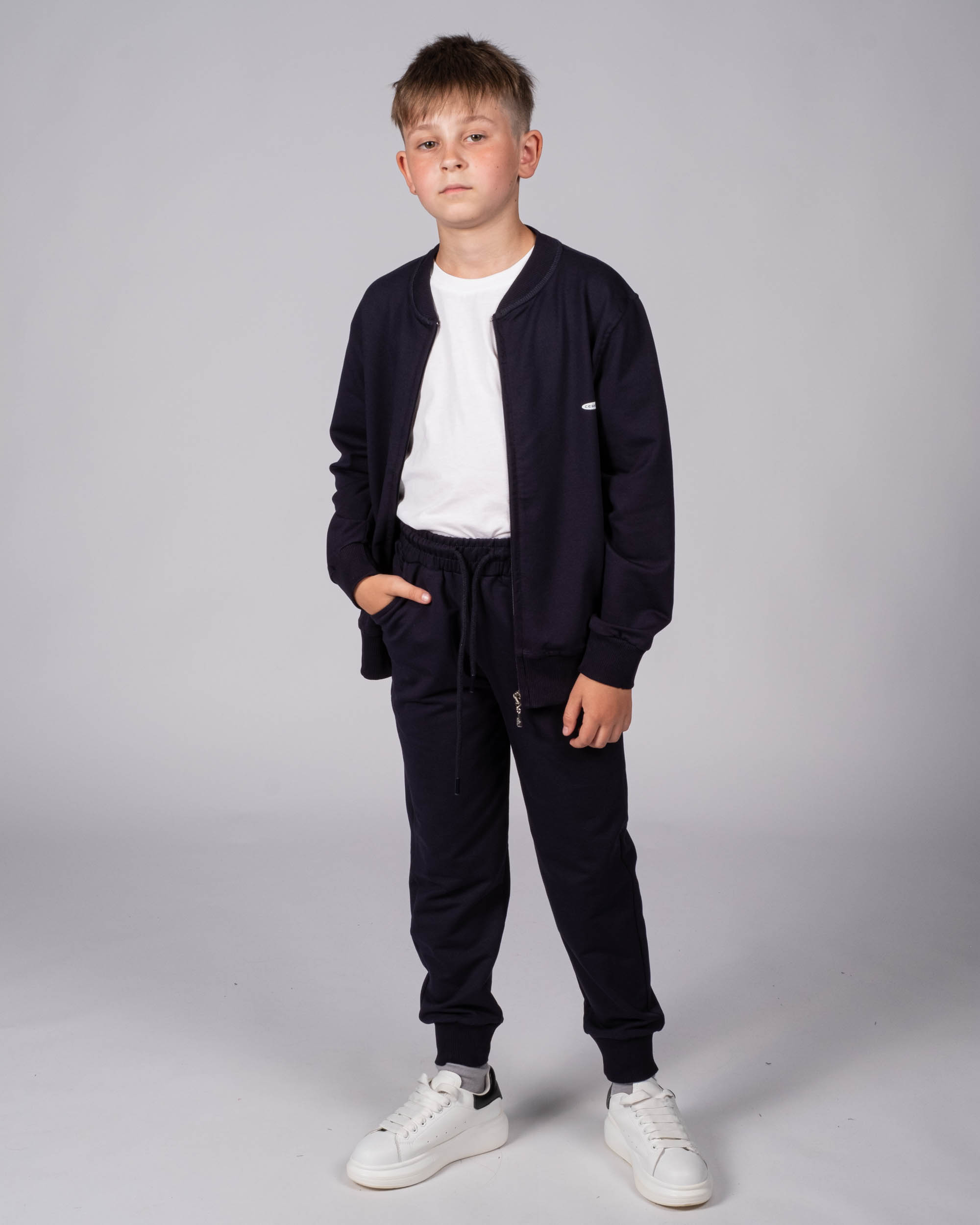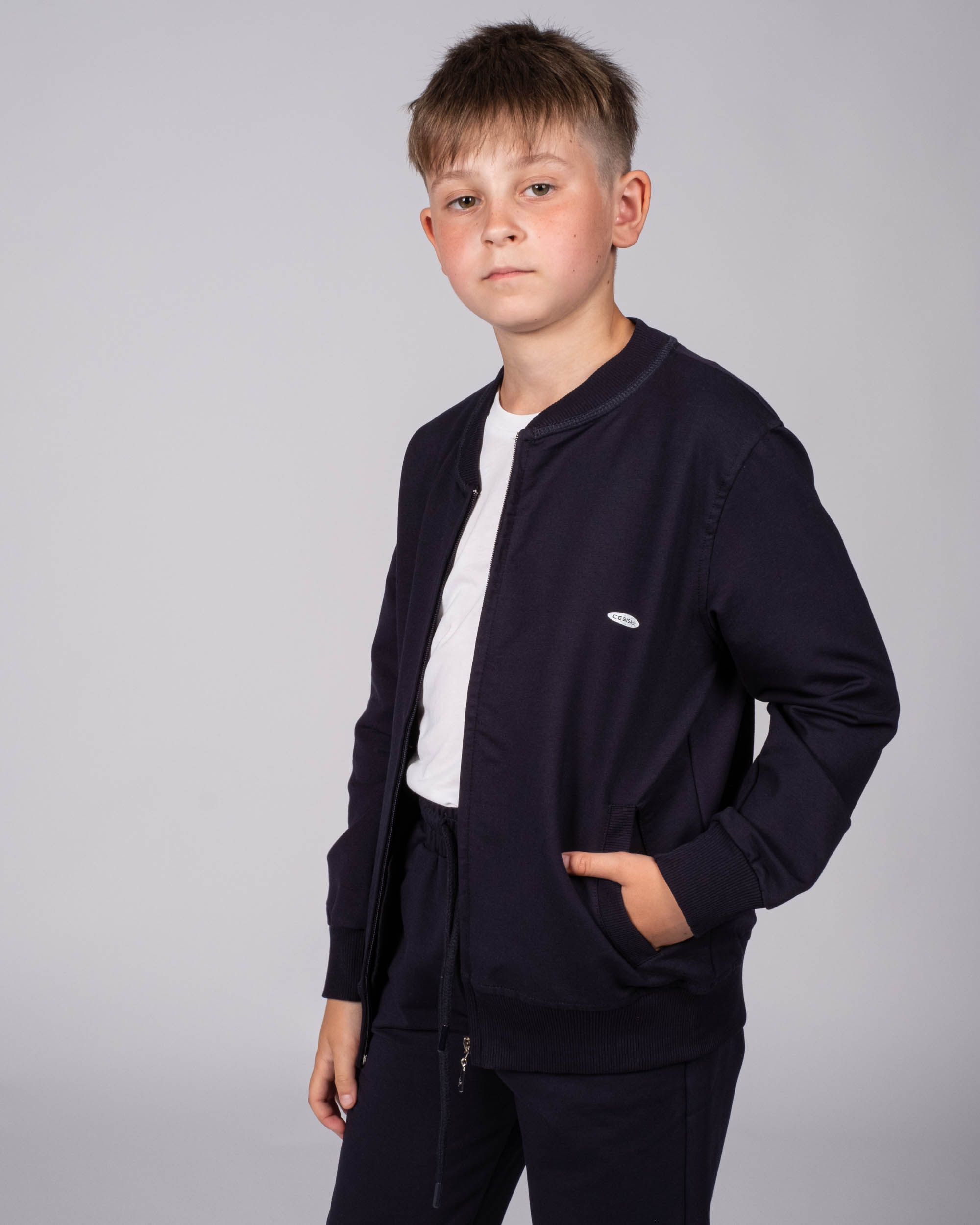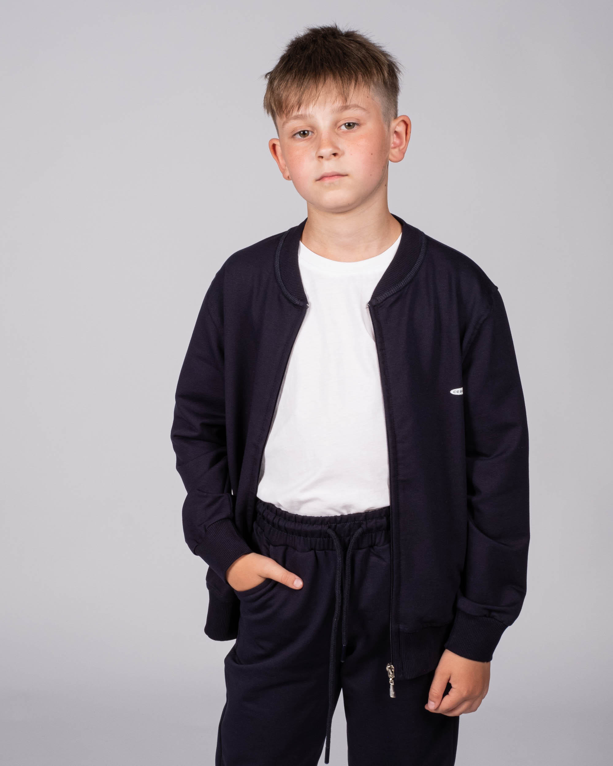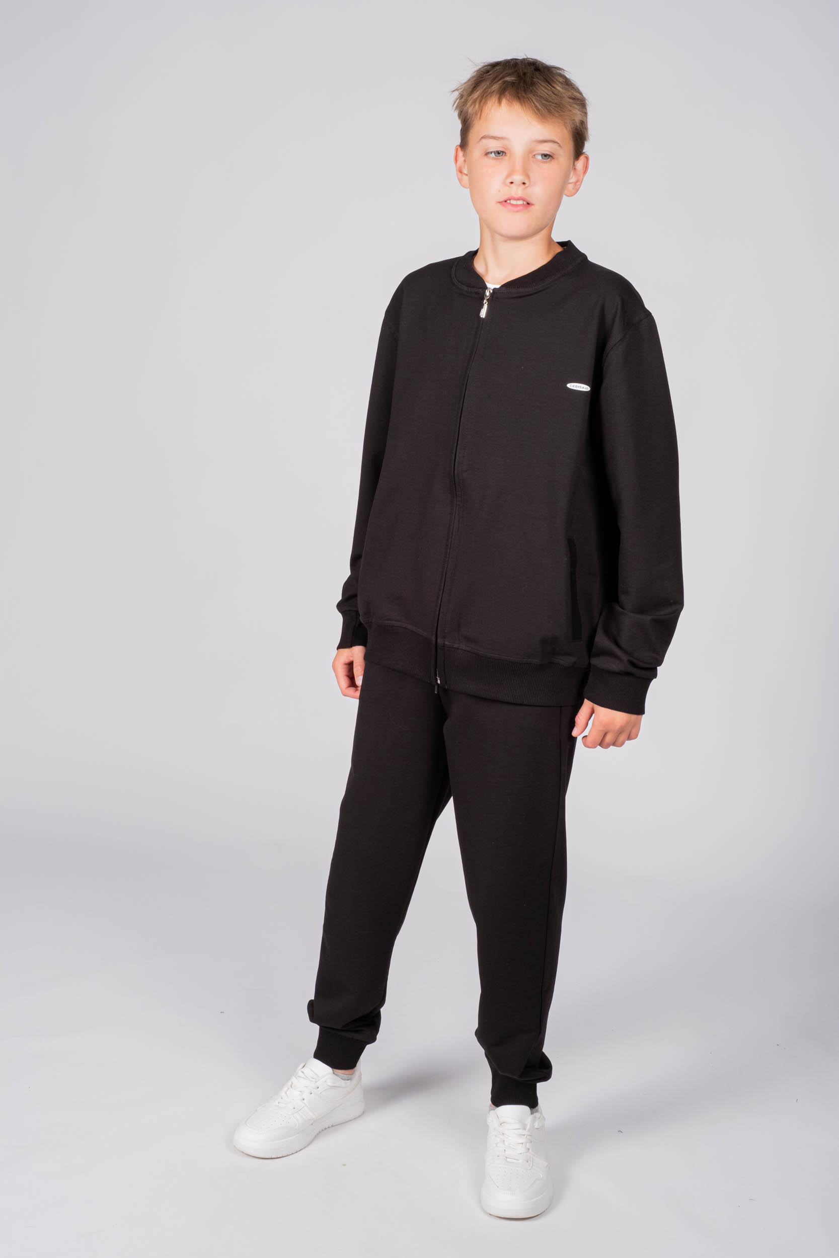 Детский однотонный спортивный костюм Cegisa оптом. Костюм выполнен из эластичного трикотажа футер (петля), олимпийка застегивается на молнию, на груди фирменная эмблема.