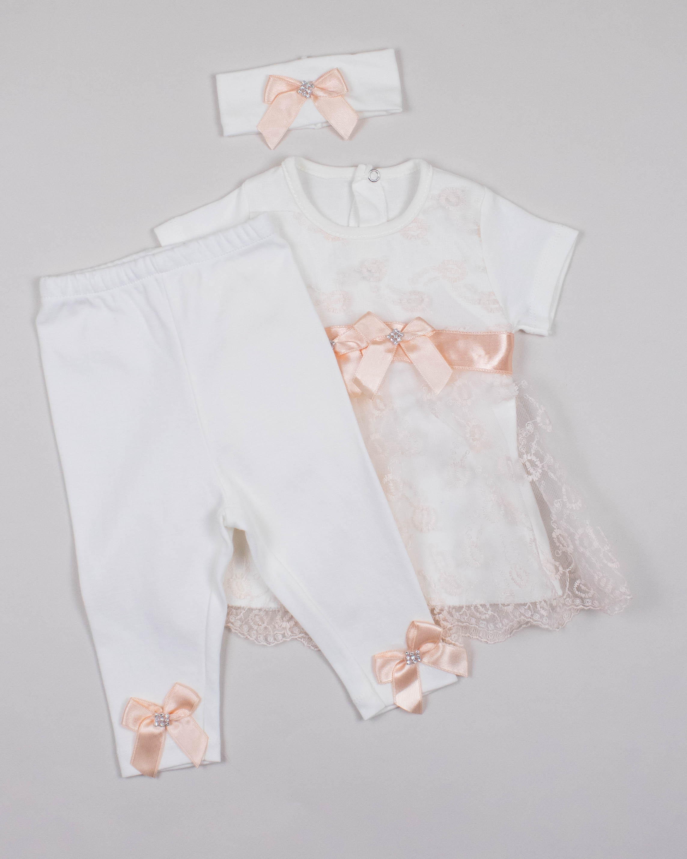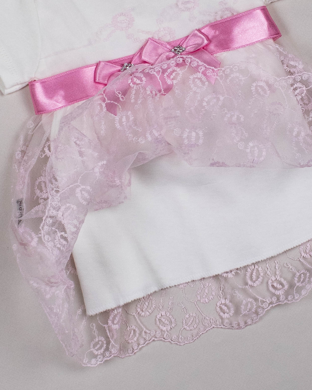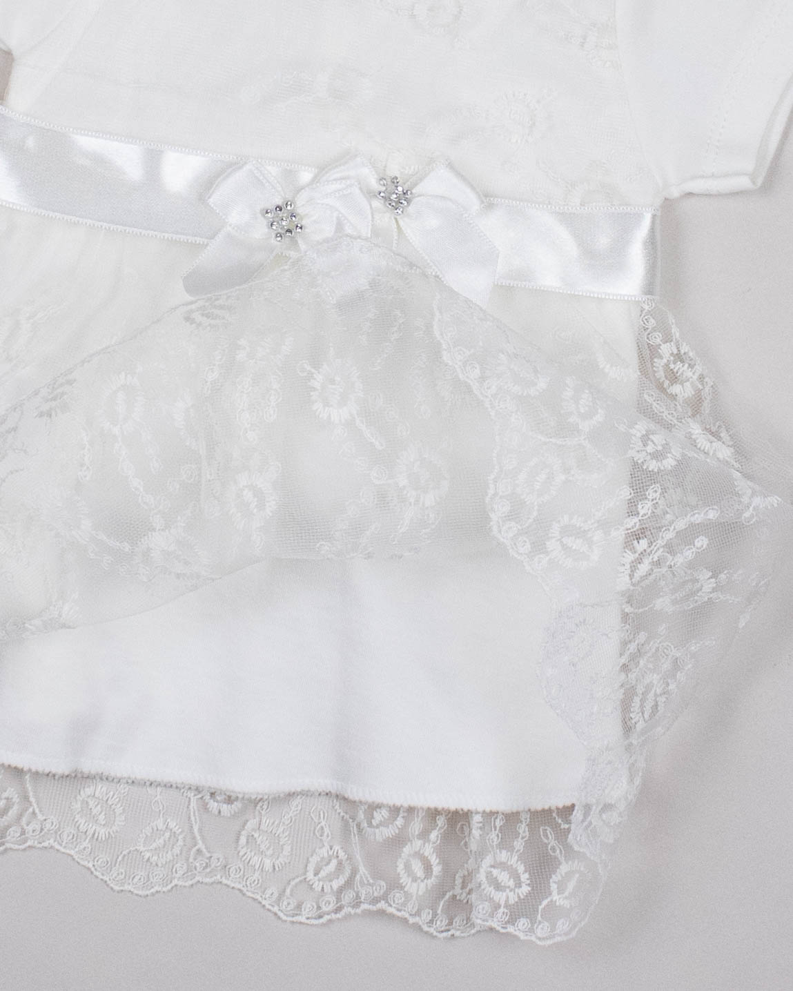 Комплект FINDIK оптом для новорожденного изготовлен из 100% хлопка с отделкой из сетки с вышивкой  и декором из страз.