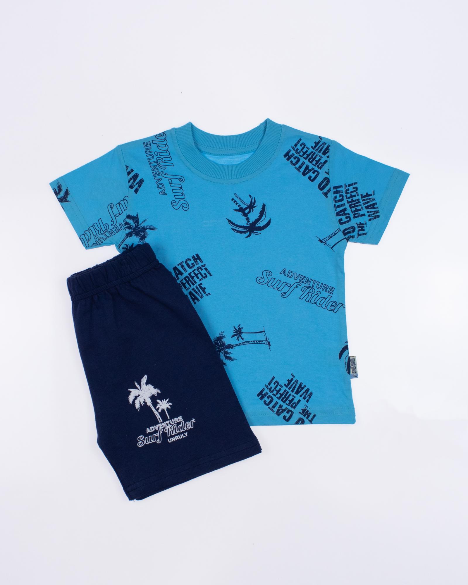 Костюм Unruly для мальчика оптом, состоит из футболки и шорт. Модель выполнена из хлопкового полотна и оформлена печатным принтом. Футболка прямого кроя, с округлым вырезом горловины. Ткань кулирная гладь.