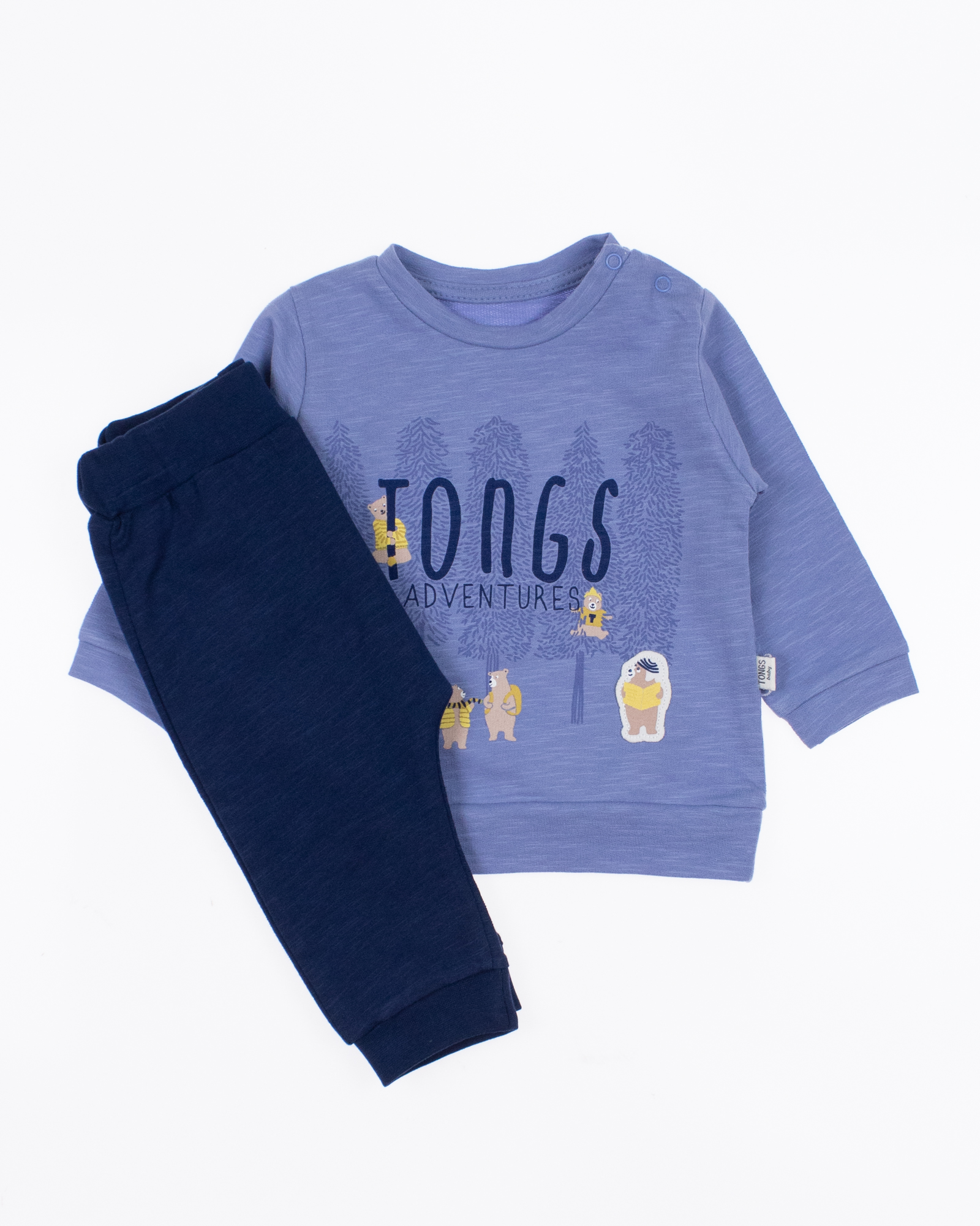 Детский комплект TONGS BABY оптом состоит из  свитшота и  джогерров. На свитшоте и штанишках присутствуют манжеты, которые можно подвернуть . Ткань мягкая, дышащая, 100% хлопок. Можно носить дома, на прогулку и в гости.